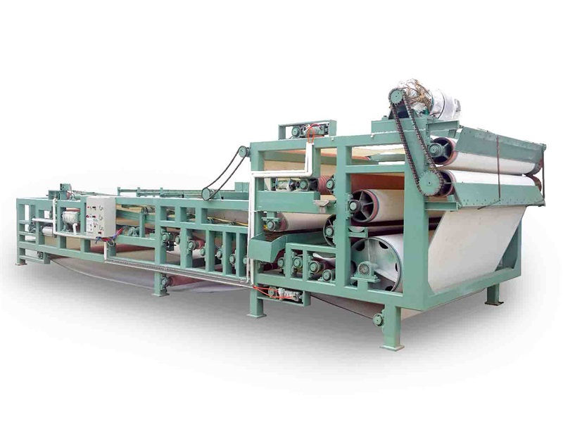 带式压滤机是消化吸收国外先进技术研制开发的一种脱水设备,作为污水处理得配套设备,可将气浮处理后的悬浮物及沉渣压滤脱水,压成泥饼,达到纺织二次污染的目的。